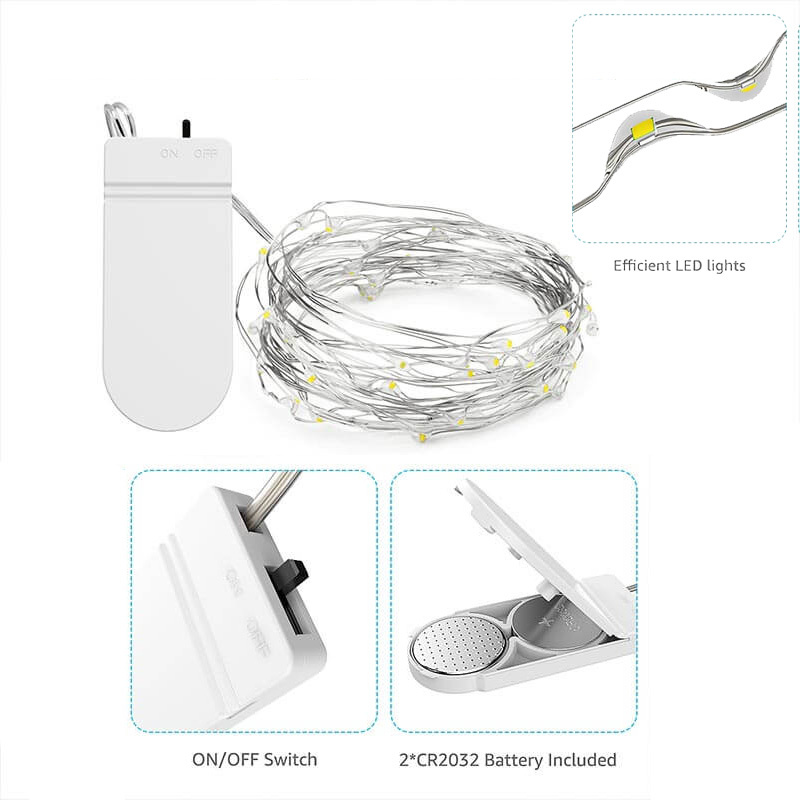 HighBrite 40 Led Cord 2 m on battery - White Special for decoration in Clothes. Be the star of the night. Read more
