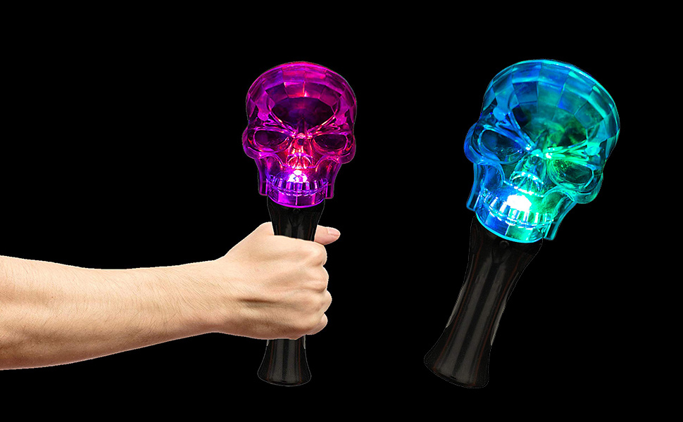 PERFECT FOR: Our LED Crystal Skull Wand will be the best way to spook your friends or use as a flashlight when trick-or-treating. Great for parties like Day of the Dead, Halloween, and other scary events.