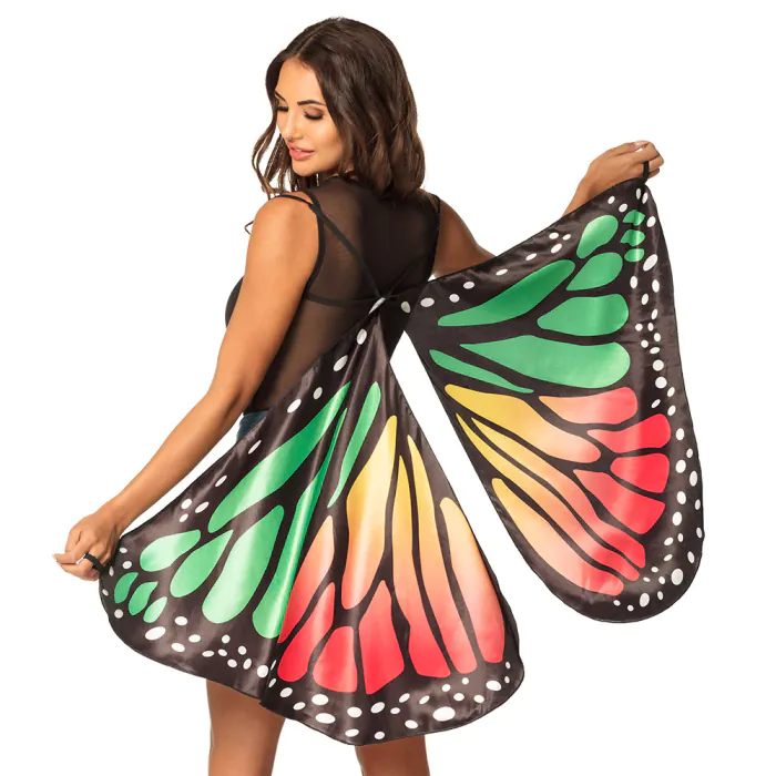 Transformez-vous en un magnifique papillon avec ces grandes ailes colorées (83 x 130 cm) pour adultes. Un accessoire unique pour se déguiser rapidement en papillon pour un carnaval ou une soirée à thème, ou pour ajouter une touche féerique à une tenue de festival.