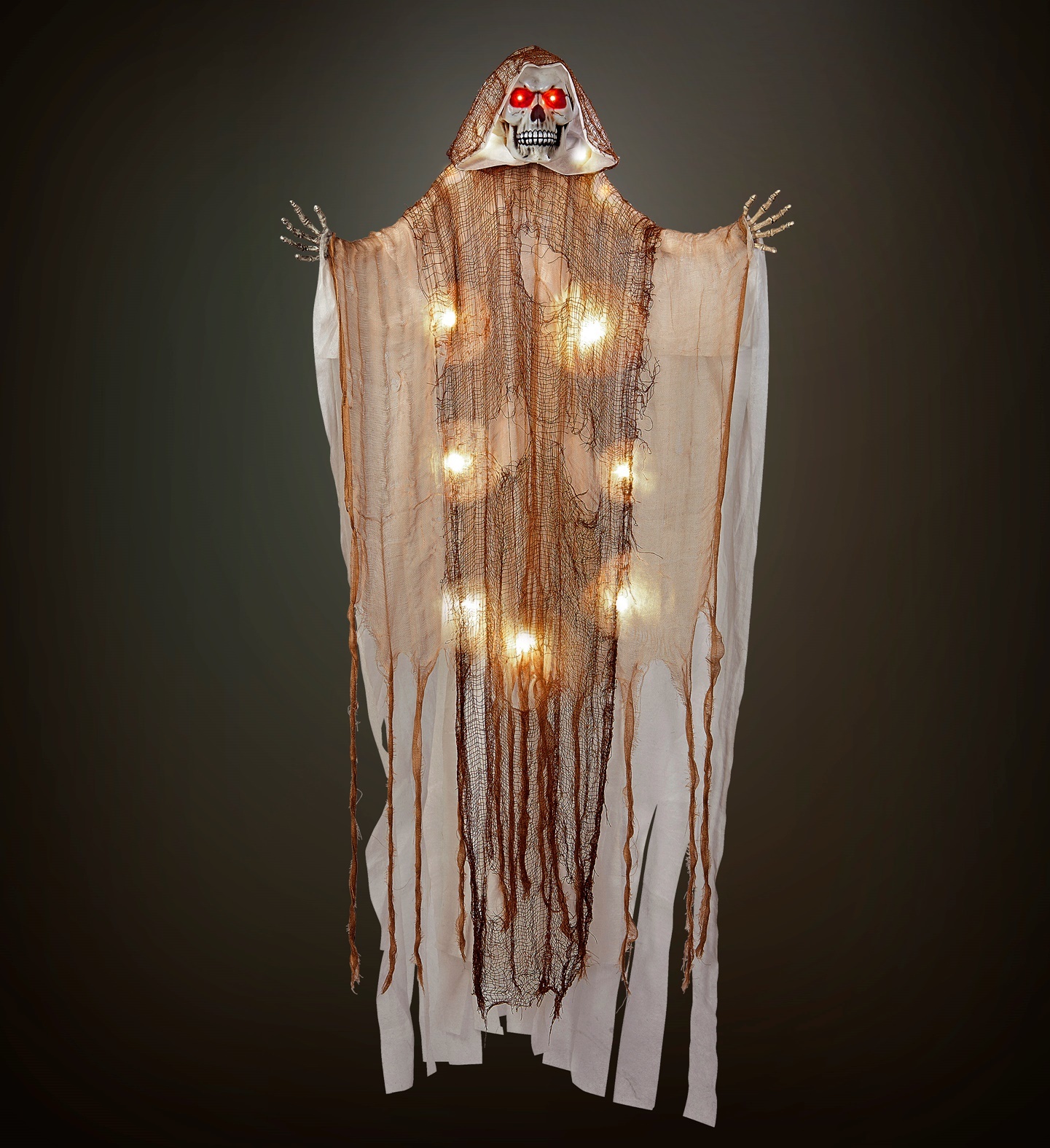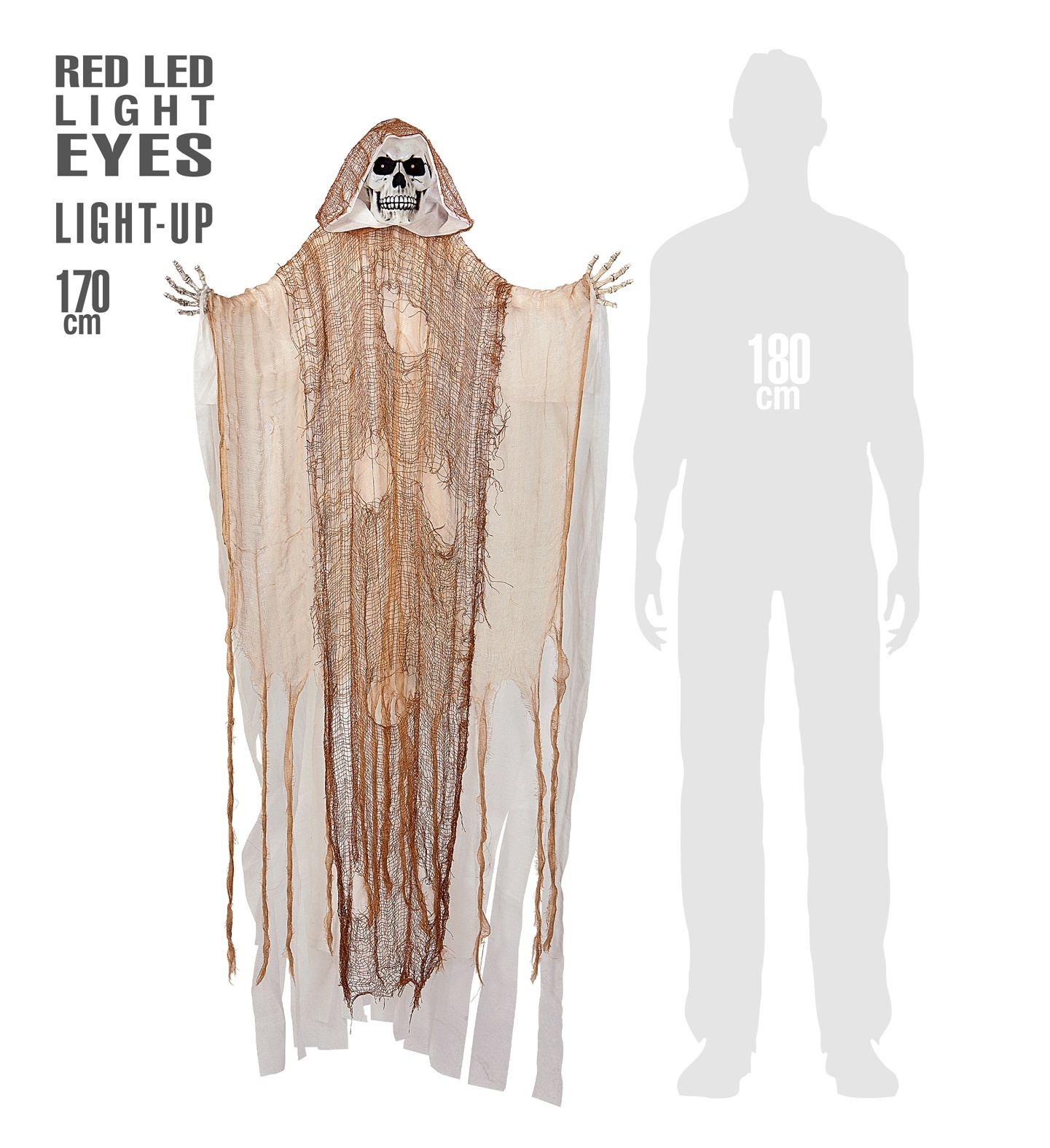 WidmannDécoration d'Halloween Faucheuse blanc à suspendre 170 cm avec lumière - Poupée suspendue avec yeux lumineux