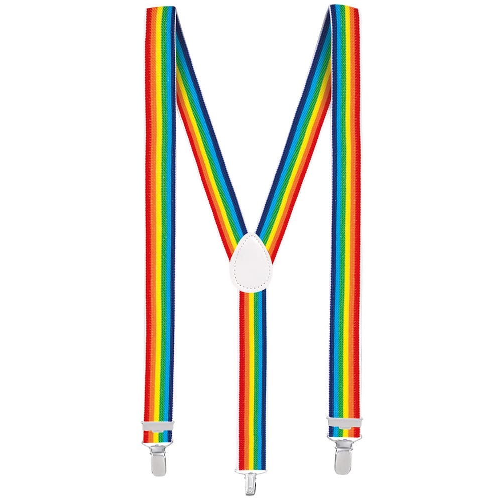 Cet ensemble de costume arc-en-ciel comprend des lunettes, un nœud papillon et des bretelles.