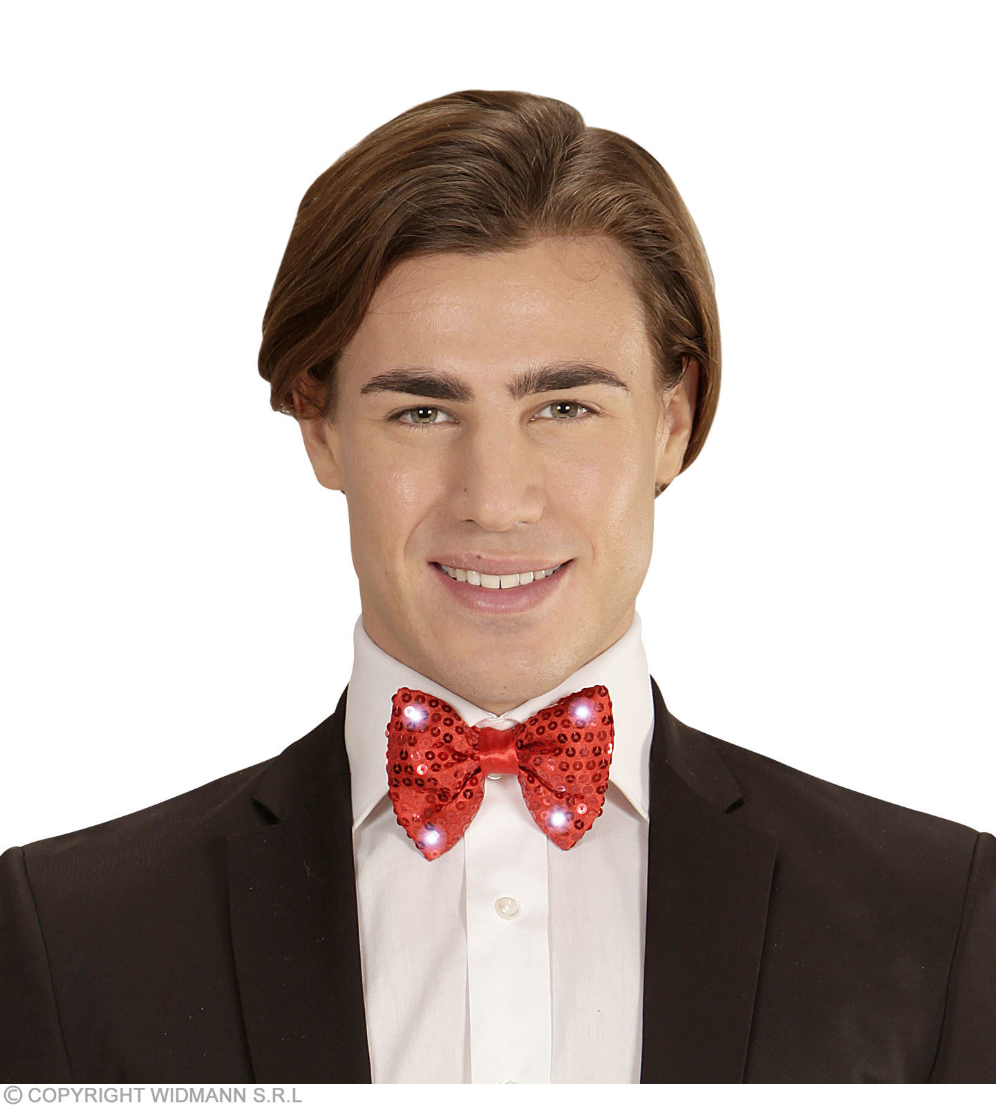 WidmannNœud papillon pailleté rouge avec 4 lumières LED clignotantes - Le nœud est réglable