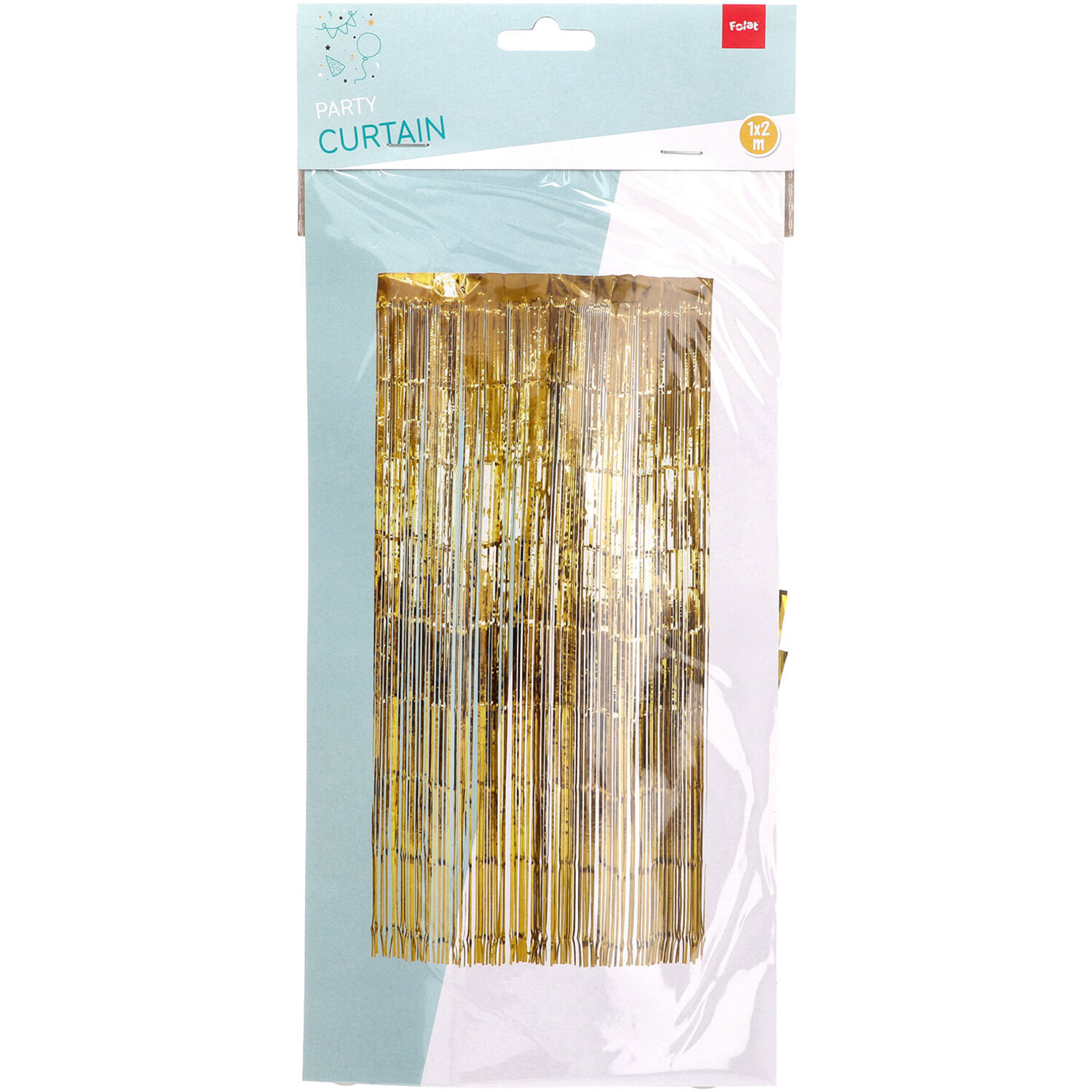 Voor een stralende binnenkomst. Deurgordijn Folie Goud, 2x1 meter. Inhoud: 1 deurgordijn. Bijvoorbeeld te gebruiken tijdens de volgende feestgelegenheid/feestgelegenheden: Jubileum, Verjaardag, Oud en Nieuw. Dit deurgordijn voor is 2 meter hoog en 1 meter breed. Het gordijn kan met plakband opgehangen worden, maar ook middels een draad dankzij de handige gordijn tunnel. Dit artikel is gemaakt van folie.