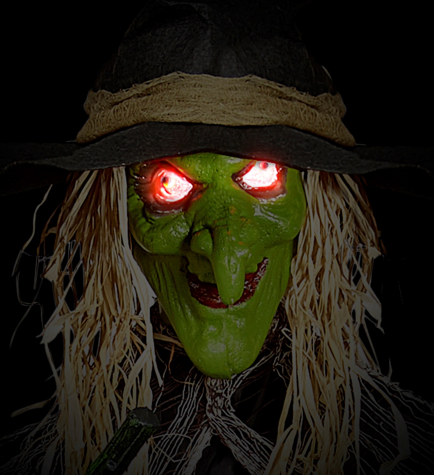 Deze heks is gekleed in een versleten griezelig zwart deken . Deze heeft een angstaanjagend gezicht met ogen deze oplichten in het rood wanneer deze door een geluid geactiveerd zal worden tevens maakt deze griezelige geluiden. Check de video om de hang pop in actie te zien
