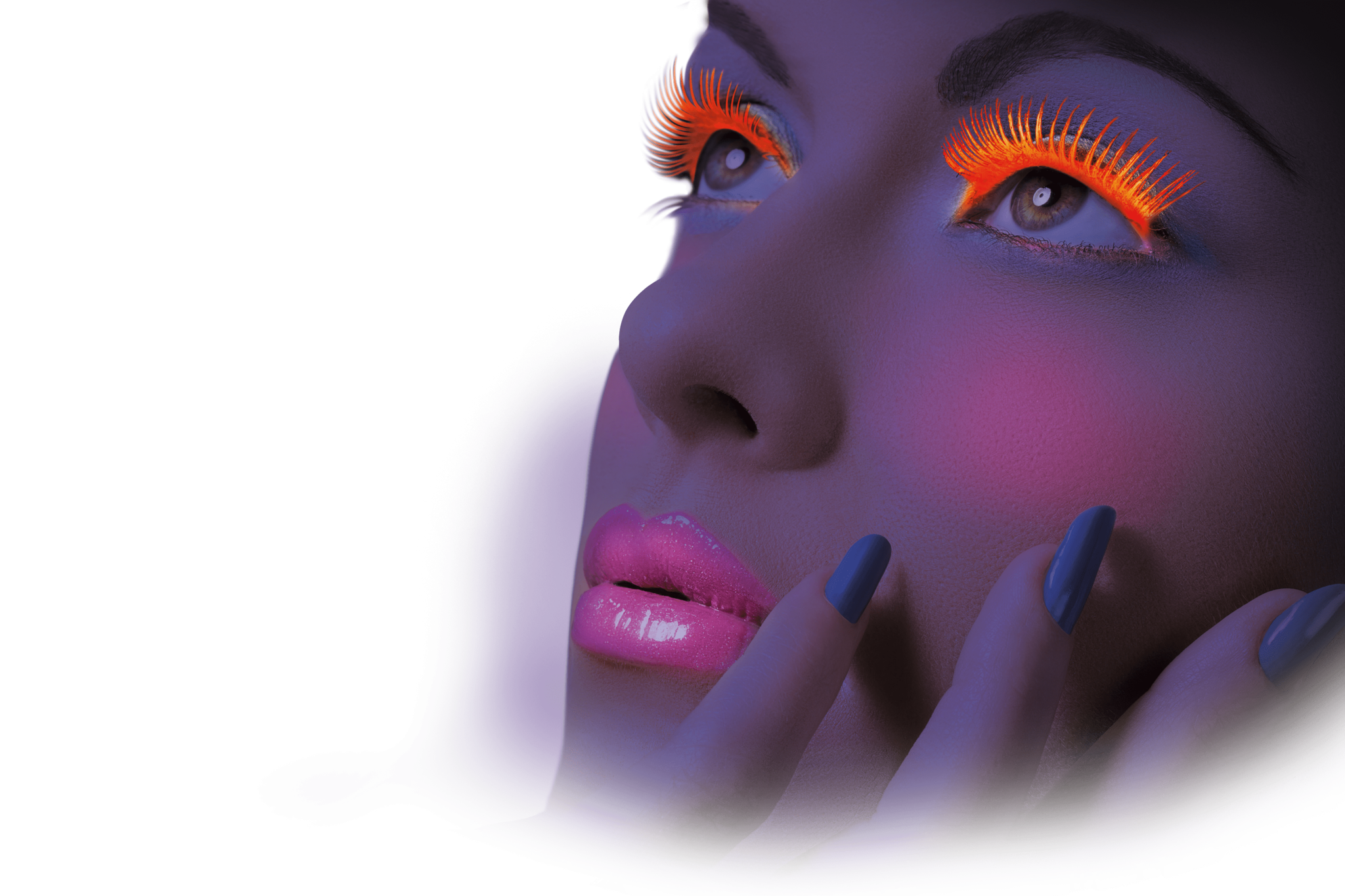 Maakt de wimpers op met ultra flitsende kleuren in normaal licht en fluoresceert in UV zwart licht.