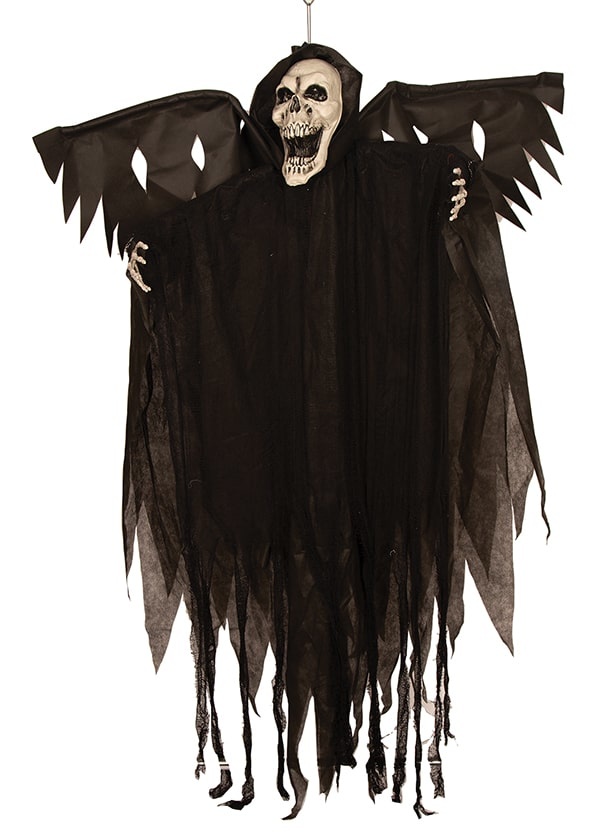 Deze angstaanjagende Magere Hein decoratie meet 150 cm en heeft vleugels deze kunnen bewegen.