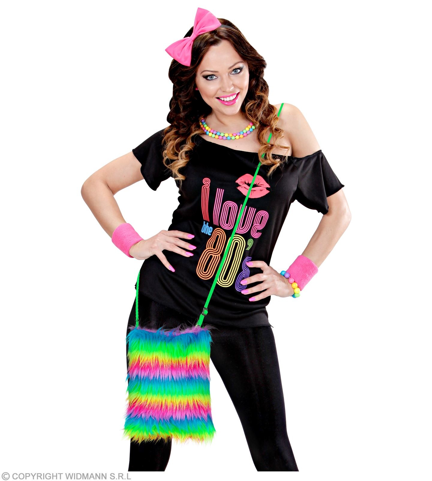 WidmannRegenboog neon pluche tas| Neon verkleed accessoire 80's