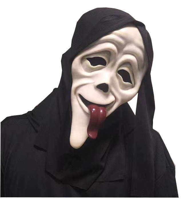 Het witte en zwarte latex masker stelt het gezicht voor de bekende film Scream. Dit masker zal gemakkelijk op je hoofd te houden zijn.