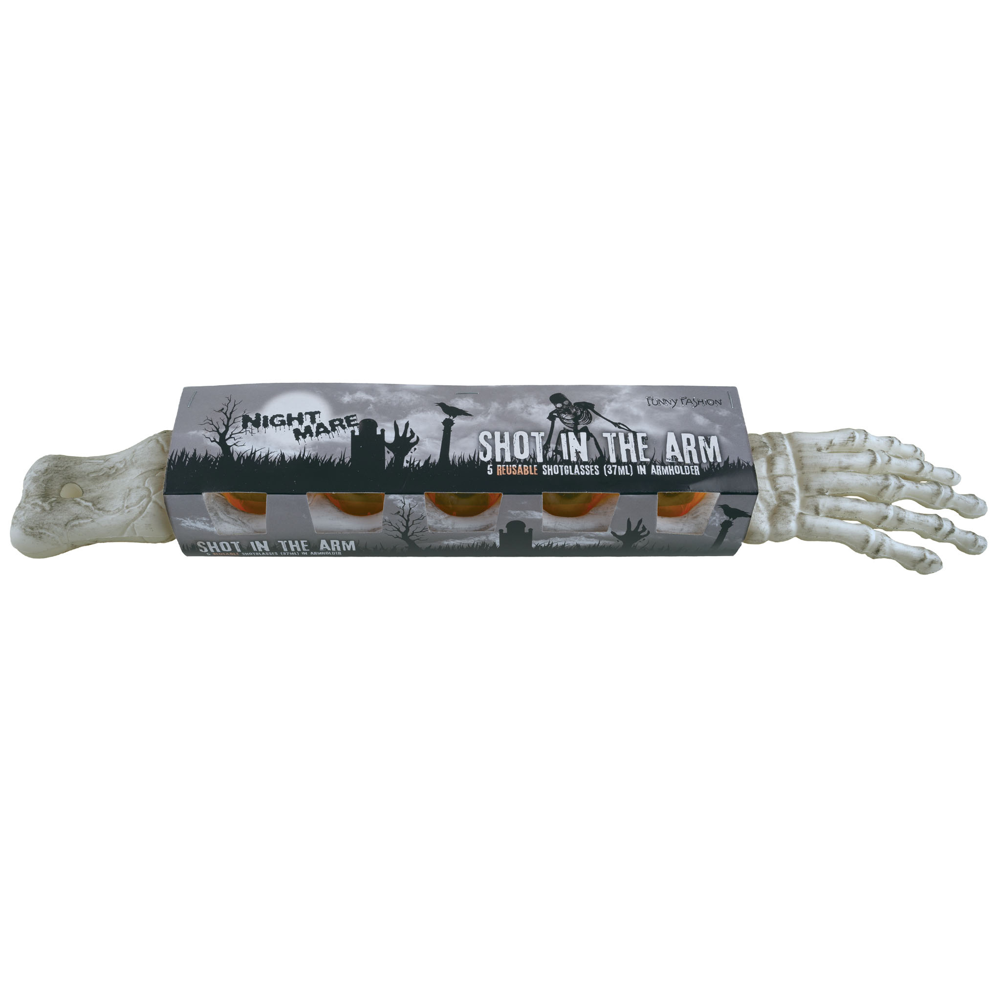 Funny FashionSkeletarm shotglaashouder - Skelet armhouder met 5 shotglazen 37 ml