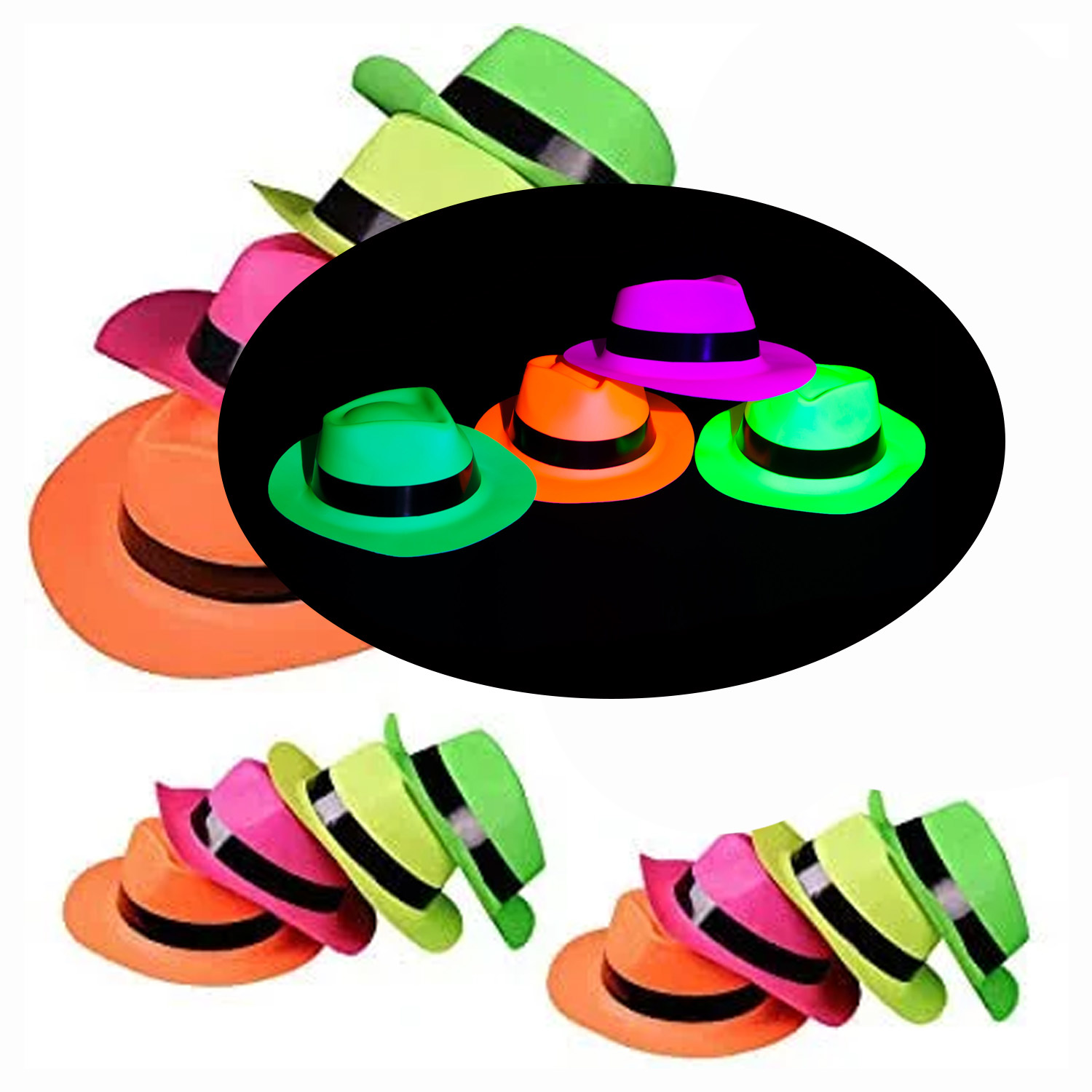 PartylineUV Neon gangster hoedjes 4 stuks | UV feestjes